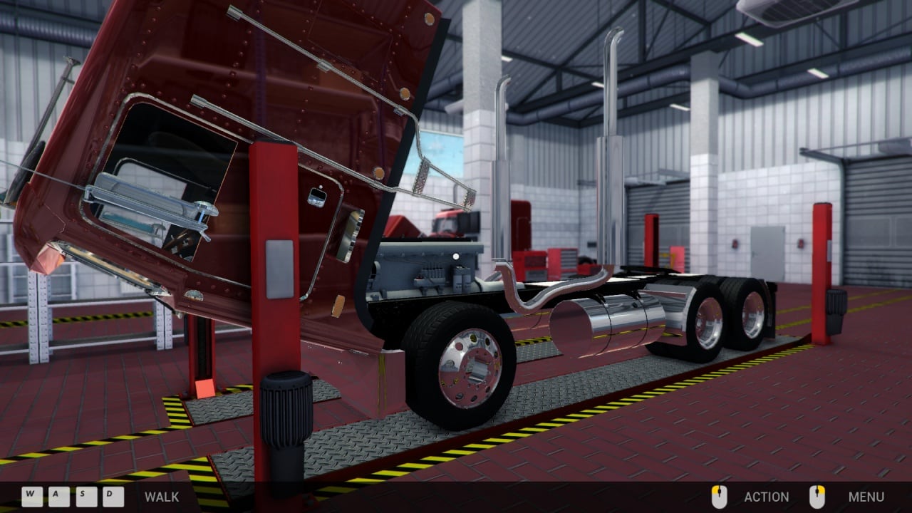 В Симуляторе ремонта грузовых автомобилей присутствует более сотни интерактивных деталей, рассчитанных на одно транспортное средство. Работы у механика будет много и он может свободно взаимодействовать со всеми доступными элементами. Сначала машина попадает в гараж, где геймер проверяет все: колеса, детали двигателя, кузов, чтобы найти поломку и заменить неисправную деталь. Закончив с заменой, машину нужно сложить обратно, ведь если все не сделать правильно, то авто просто не сдвинется с места. Результат работы можно протестировать сразу на трассе возле мастерской.